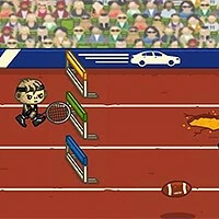 ์ž‘์€ ๋งŒํ™” ์บ๋ฆญํ„ฐ๊ฐ€ ํ…Œ๋‹ˆ์Šค ๋ผ์ผ“์„ ๋“ค๊ณ  ์œก์ƒ ํŠธ๋ž™์—์„œ ์žฅ์• ๋ฌผ์„ ๋›ฐ์–ด๋„˜๊ณ  ์žˆ์œผ๋ฉฐ, ํŠธ๋ž™์—๋Š” ํ’‹๋ณผ๊ณผ ์žฅ์• ๋ฌผ๋“ค์ด ๋†“์—ฌ ์žˆ๋‹ค