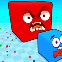 ํ™”๋‚œ ํ‘œ์ •์˜ ํฐ ๋นจ๊ฐ„ ์ •์œก๋ฉด์ฒด์™€ ๋†€๋ž€ ํ‘œ์ •์˜ ์ž‘์€ ํŒŒ๋ž€ ์ •์œก๋ฉด์ฒด๊ฐ€ ์žˆ๋Š” ๋งŒํ™” ์Šคํƒ€์ผ์˜ ์ด๋ฏธ์ง€