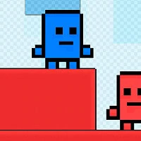 ํŒŒ๋ž€์ƒ‰๊ณผ ๋นจ๊ฐ„์ƒ‰ ํ”ฝ์…€ ์•„ํŠธ ์บ๋ฆญํ„ฐ๊ฐ€ ๊ณ„๋‹จ์‹ ๋นจ๊ฐ„ ๋ธ”๋ก ์œ„์— ์„œ ์žˆ๋Š” ๋ชจ์Šต