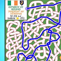 복잡한 미로 길을 배경으로 아일랜드 국기가 포함된 지도