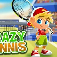 ν…Œλ‹ˆμŠ€ μ½”νŠΈμ— μžˆλŠ” 금발 캐릭터와 CRAZY TENNISλΌλŠ” ν…μŠ€νŠΈ
