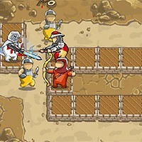 ํˆฌ๊ตฌ๋ฅผ ์“ด ๊ธฐ์‚ฌ์™€ ๋ฌด๊ธฐ๋ฅผ ๋“  ๋ณ‘์‚ฌ๋“ค์ด ๋‹ค๋ฆฌ ์œ„์—์„œ ๋Œ€์น˜ํ•˜๊ณ  ์žˆ๋Š” ๋งŒํ™” ์Šคํƒ€์ผ์˜ ์ด๋ฏธ์ง€