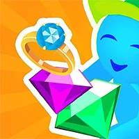 ํŒŒ๋ž€์ƒ‰ ์บ๋ฆญํ„ฐ๊ฐ€ ์ดˆ๋ก์ƒ‰๊ณผ ๋ณด๋ผ์ƒ‰ ๋ณด์„๊ณผ ๋ฐ˜์ง€๋ฅผ ๋“ค๊ณ  ์žˆ๋Š” ๋ชจ์Šต