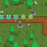 ๋…น์ƒ‰๊ณผ ํŒŒ๋ž€์ƒ‰ ์ž‘์€ ๊ดด๋ฌผ๋“ค์ด ๊ฐˆ์ƒ‰ ๊ธธ์„ ๋”ฐ๋ผ ๊ฑท๊ณ  ์žˆ์œผ๋ฉฐ, ์ฃผ๋ณ€์— ๋‚˜๋ฌด์™€ ํฌํƒ‘๋“ค์ด ๋ฐฐ์น˜๋˜์–ด ์žˆ๋Š” ์žฅ๋ฉด