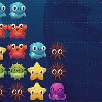 다양한 색상의 해양 생물 캐릭터들이 격자 무늬 배경 위에 배열되어 있는 이미지