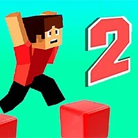 ํ”ฝ์…€ ์Šคํƒ€์ผ์˜ ์บ๋ฆญํ„ฐ๊ฐ€ ๋ถ‰์€ ๋ธ”๋ก ์œ„๋ฅผ ๋›ฐ์–ด๋„˜๊ณ  ์žˆ์œผ๋ฉฐ, ์˜ค๋ฅธ์ชฝ์—๋Š” ์ˆซ์ž 2๊ฐ€ ํฌ๊ฒŒ ๋ณด์ž…๋‹ˆ๋‹ค