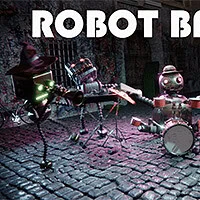 로마 트라스테베레 거리 한복판에서 로봇 밴드가 테크노 음악을 연주하고 있어요. 슬라이더를 움직여서 색, 음악 속도, 낮이나 밤 같은 분위기를 바꿔보세요. 로봇을 터치하면 직접 연주도 할 수 있어요.