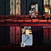 ๋ณ‘๊ธฐ๋ฅผ ๋“  ๋‘ ํ”ฝ์…€ ์•„ํŠธ ์บ๋ฆญํ„ฐ๊ฐ€ ๋‚˜๋ฌด ๋ฐฐ๊ฒฝ์˜ ํ”Œ๋žซํผ ์œ„์—์„œ ๋Œ€์น˜ํ•˜๊ณ  ์žˆ๊ณ , ํ™”๋ฉด์—๋Š” STUN์ด ํ‘œ์‹œ๋œ ์ธํ„ฐํŽ˜์ด์Šค ์š”์†Œ๊ฐ€ ์žˆ์œผ๋ฉฐ ์†๊ฐ€๋ฝ๊ณผ S ํ‚ค๊ฐ€ ๊ฐ•์กฐ๋˜์–ด ์žˆ์Šต๋‹ˆ๋‹ค