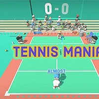 ํ…Œ๋‹ˆ์Šค ์ฝ”ํŠธ์—์„œ ์บ๋ฆญํ„ฐ๋“ค์ด ๊ฒฝ๊ธฐ๋ฅผ ํ•˜๊ณ  ์žˆ์œผ๋ฉฐ, ํ™”๋ฉด ์ค‘์•™์— TENNIS MANIA๋ผ๋Š” ๊ธ€์ž์™€ ์ ์ˆ˜๊ฐ€ ํ‘œ์‹œ๋˜์–ด ์žˆ๋‹ค