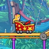 ๋กค๋Ÿฌ์ฝ”์Šคํ„ฐ๋ฅผ ํƒ€๊ณ  ์žˆ๋Š” ๊ธˆ๋ฐœ ์ธํ˜•์ด ๋ฐฐ๊ฒฝ์˜ ์ˆฒ์„ ์ง€๋‚˜๊ณ  ์žˆ๋Š” ๋ชจ์Šต