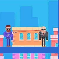 ํŒŒ๋ž€์ƒ‰ ๋ฐฐ๊ฒฝ์— ๊ฑด๋ฌผ ์•ž์—์„œ ์„ ๊ธ€๋ผ์Šค๋ฅผ ๋‚€ ๋‘ ์บ๋ฆญํ„ฐ, ํ•œ ๋ช…์ด ์ด์„ ๊ฒจ๋ˆ„๊ณ  ์žˆ๋Š” ๋ชจ์Šต
